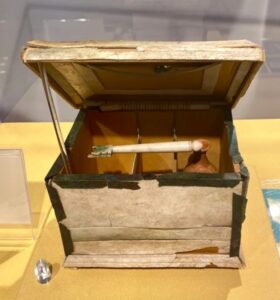 Tanto l’immagine distesa, quanto quella a bassorilievo riproducono la donna con un flabello in mano. Probabilmente lo stesso del manico ritrovato. La sua serva, invece, stringe una sorta di valigetta: il cofanetto di osso. Mentre non si conosce il suo nome: la storia d’amore è ancora in gran parte da ricostruire.