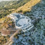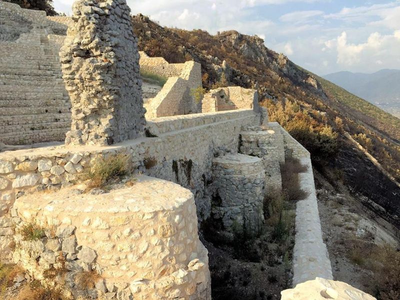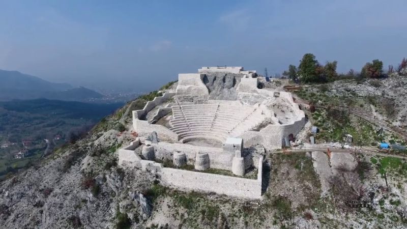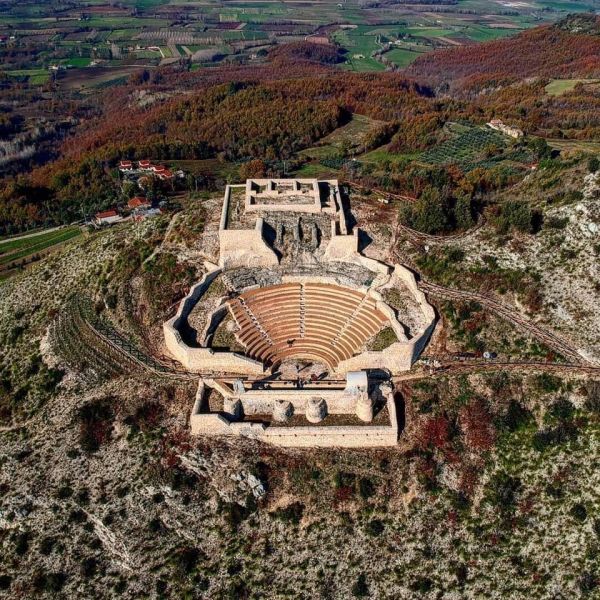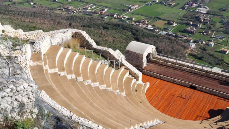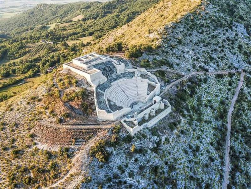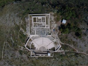 All’altezza di 410 metri è stato individuato un antico santuario costituito da un tempio ed un teatro, posti su due terrazze a quote differenti, la cui scenografia è accentuata ancor di più dallo straordinario panorama.