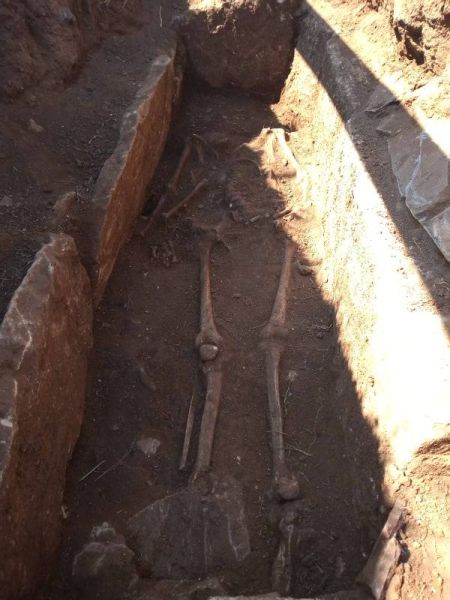 “La tomba 1 è costituita da una fossa rettangolare scavata nella terra e rivestita di lastre di pietra di reimpiego, provenienti da strutture più antiche – spiega l’archeologa Carolina Megale – al suo interno è stato rinvenuto lo scheletro del defunto, con molta probabilità una donna, che aveva ancora tra gli oggetti personali uno spillone in osso per capelli, mentre il resto del corredo è stato rubato in un momento ancora imprecisato.”