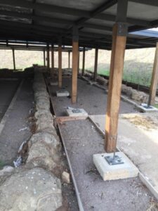 All’interno vi erano alcuni ambienti aperti su una corte centrale coperta e, in uno di essi, era collocato un vano dotato di focolare.