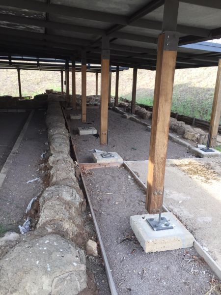 La costruzione ospitava i sacerdoti ed i pellegrini ed era usata anche come deposito di oggetti votivi e di ceramica d’uso comune che sicuramente venivano prodotti dagli artigiani che lavoravano presso le due fornaci costruite nell’area del santuario. L’edificio, definito arcaico, appartiene al periodo più antico di vita delle XIII aree; verrà raso al suolo nella seconda metà del V secolo a.C.