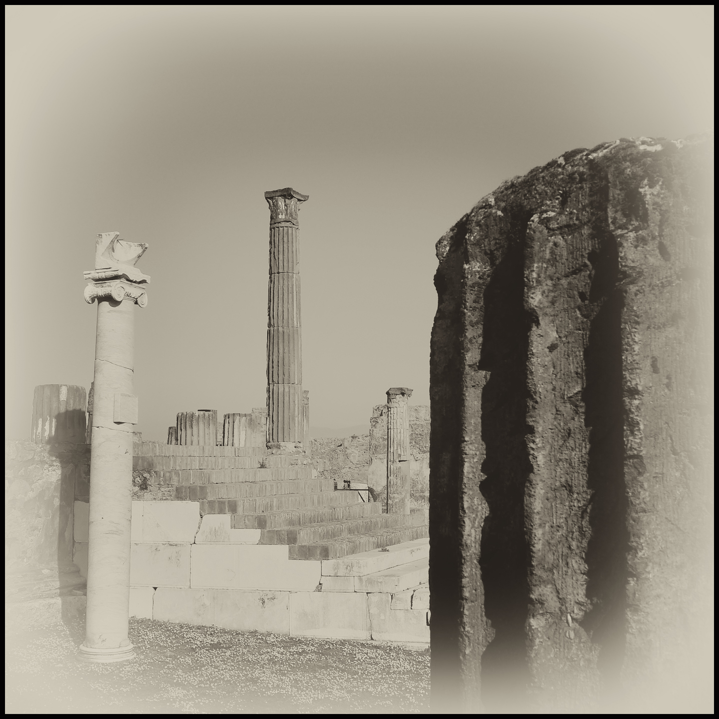 Quegli scatti volevano essere soprattutto degli appunti di viaggio, dei ricordi di scorci e frammenti che colpivano di volta in volta il mio sguardo facendomi sognare ad occhi aperti, senza nessuna pretesa e finalità professionali: souvenir di una mattina diversa in un luogo misterioso e magico, che apparteneva alla memoria, e che sollecitava in maniera così feconda la mia fantasia.