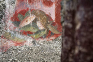 Lo spiega il direttore Gabriel Zuchtriegel, commentando il recente ritrovamento. Si tratta di “pitture del cosiddetto secondo stile e quindi siamo nel I secolo a.C., più di un secolo prima della distruzione di Pompei nel 79 d.C. Questo tipo di pittura, che è all’inizio della grande pittura parietale romana, viene dal teatro e dunque ha la funzione di creare una messa in scena, un’illusione. C’è una colonna reale e, sulla parete, una colonna dipinta, e tra le colonne un magnifico fregio di cacciagione, di frutti di mare, di pesca, che doveva adornare lo spazio dove si celebravano dei banchetti veri”.