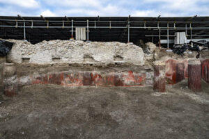 Gabriel Zuchtriegel: “Apparteneva sicuramente ad una famiglia molto benestante e ricca”, la casa il cui salone colonnato con affreschi di pregio sta emergendo dagli scavi nella Regio IX del Parco archeologico di Pompei.