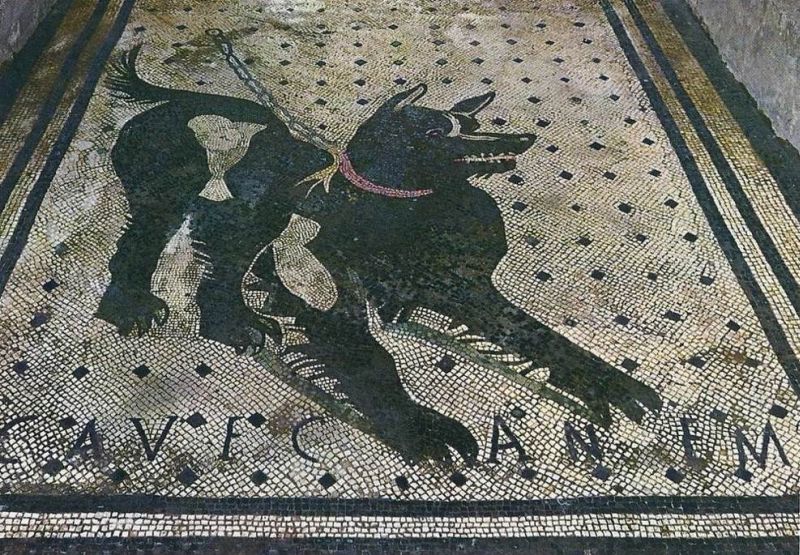 Una volta ristabilite mediante restauro le condizioni del celebre mosaico con raffigurazione del cane alla catena ed iscrizione cave canem (attento al cane), si è ritenuto opportuno proteggerlo mediante una struttura in vetro, per garantirne una migliore salvaguardia anche dagli agenti atmosferici.