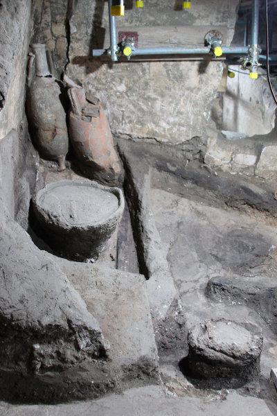 La conservazione al primo piano, in una zona dove le indagini stratigrafiche continueranno nei prossimi mesi, verosimilmente aveva una doppia finalità: in primo luogo, gli alimenti erano più protetti da parassiti come i roditori. Sin dal 2023, sono stati trovati resti di diversi esemplari di topi e ratti negli alloggi servili del pianterreno, che non disponevano di un vero e proprio pavimento ma solo di un battuto di terra. Inoltre, è probabile che comunque fosse previsto un razionamento e dunque un controllo di quanto ciascuno poteva prendere giornalmente dalla dispensa, anche in base alle mansioni, all’età e al sesso. Tale controllo potrebbe essere risultato più facile conservando i viveri al primo piano, dove potrebbero aver alloggiato i servi più fidati del padrone di casa, che esercitavano un controllo sugli altri, secondo un articolato sistema ricostruito in precedenza in base all’analisi del quartiere servile.