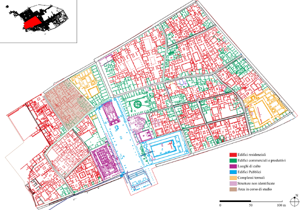 “Storie di confini. L’insula I 17 e il suo contesto” (a firma di Antonella Coralini) propone un aggiornamento sugli esiti del progetto di scavo e ricerca che dal 2019 l’Università di Bologna segue sull’insula I 17 di Pompei, in continuità con il lavoro svolto dall’Alma Mater sull’insula IX 8 fra il 1998 e il 2017. La finalità del progetto è quella di indagare le microstorie della dialettica fra spazi pubblici e proprietà private in una città antica, esaminando gli aspetti tecnici e costruttivi della sua rete di strade, in una prospettiva diacronica. L’insula I 17 è stata scelta, nello specifico, in ragione della sua posizione nel tessuto urbano di Pompei, della sua interessante anomalia nella forma e del suo offrire uno dei due soli casi noti a Pompei di peristilio ad arcate, presente nella Casa degli Archi (I 17, 4).