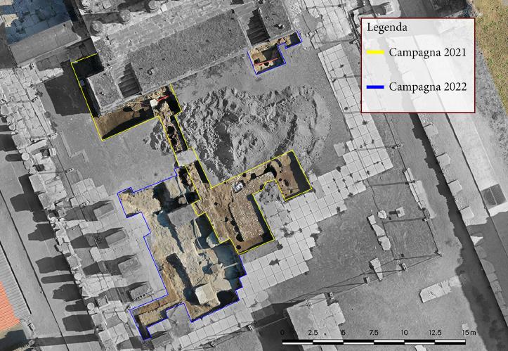 L’E-Journal “Il Capitolium e il settore nord del Foro. Nuovi dati a partire dalle indagini stratigrafiche” (di Luigi Maria Caliò, Gian Michele Gerogiannis, Antonello Fino, Vittorio Mirto, Lavinia Maria Silvia Fallea) propone un aggiornamento circa i risultati delle ricerche che l’Università di Catania, in collaborazione con l’Università degli Studi del Molise e il Politecnico di Bari, sta conducendo dal 2020 presso la piazza del Foro di Pompei, nell’area più prossima al Tempio di Giove. Lo studio della stratigrafia di scavo e delle sequenze dei reperti ceramici rinvenuti stanno progressivamente permettendo di definire maggiormente le sequenze cronologiche delle fasi di vita del Foro, portando a riconsiderare in parte le ricostruzioni della piazza principale della città proposte in precedenza.