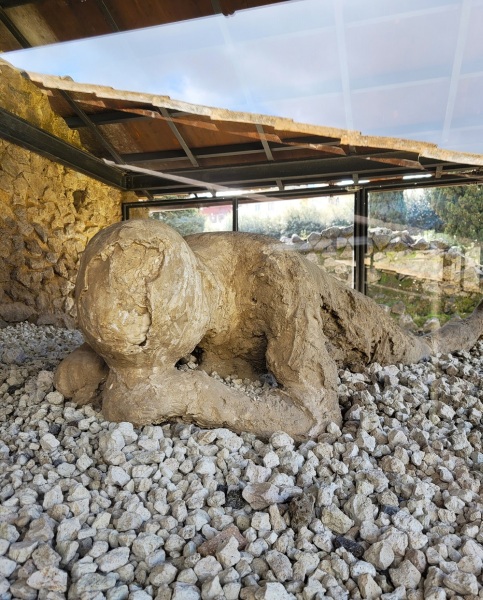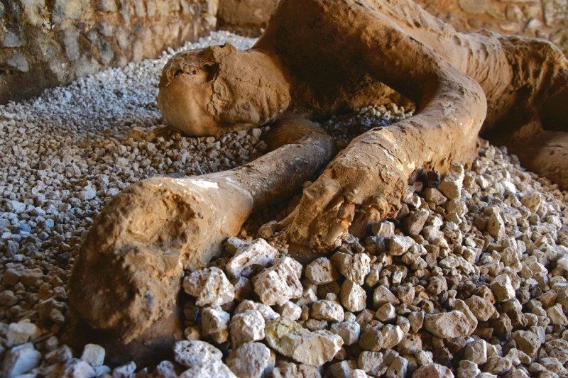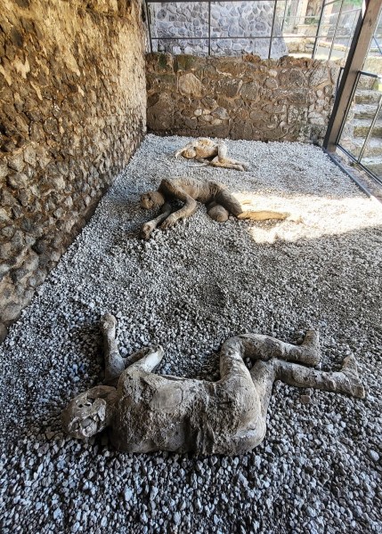 Come da prassi già ordinaria al tempo, di tali vittime furono realizzati i calchi, secondo la tecnica messa a punto dall’archeologo Giuseppe Fiorelli nell’800. Il metodo, tuttora utilizzato, consiste nel colare gesso liquido nelle cavità rinvenute nel banco di cenere indurita, laddove gli archeologi individuano dei vuoti causati dalla decomposizione delle parti molli organiche. Una volta asciugatosi il gesso, vengono restituiti come uno stampo il volume, la forma e la posizione dell’oggetto o del corpo ivi sepolti.
