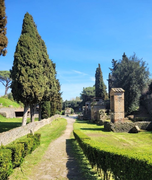 Dall’ingresso di Piazza Anfiteatro a Pompei, attraversando il tratto di passeggiata nel verde costeggiato dalle antiche tombe della necropoli di Porta Nocera, si giunge a un luogo unico che, come altri simili a Pompei, è pregno di sacralità e compassione. Si tratta dell’area espositiva di alcuni calchi di vittime dell’eruzione, rinvenute in prossimità della antica Porta di Nocera.