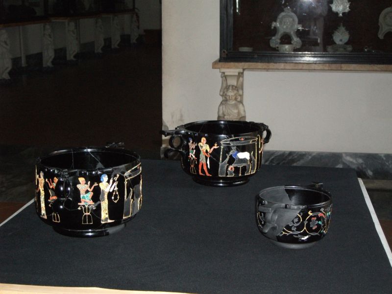 Dopo un anno e mezzo dalla caduta che ne aveva provocato la rottura e dopo 14 mesi di restauro, le tre coppe di ossidiana da Stabiae, decorate con motivi egittizzanti, sono nuovamente esposte al pubblico del Museo Archeologico Nazionale di Napoli.