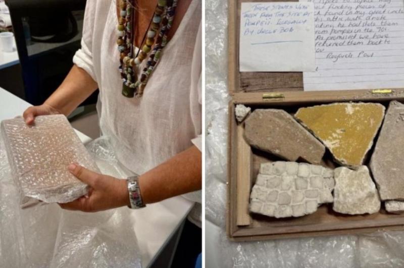 «Queste pietre sono state prese illegalmente, negli anni settanta, dal sito di Pompei dal compianto zio Bob», e poi conservate nella sua soffitta. Poche parole, scritte a mano su un biglietto di carta, all’interno di una scatola fatta recapitare nel Parco su indicato, hanno fatto compagnia per oltre cinquant’anni a cinque pietre trafugate dal Parco archeologico di Pompei dal su menzionato turista inglese. Insomma, un certo alone di mistero che si accompagna, inevitabilmente, al rinvenimento di tale, straordinario, “scrigno della memoria”, per il quale il tempo sembrava essersi fermato.