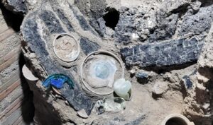 Altri eccezionali ambienti quotidiani arredati erano stati portati alla luce, nelle scorse settimane, a Pompei, nella stessa area, a ridosso della Domus del Larario. In una stanza c’era persino un armadio rimasto chiuso per duemila anni. Contiene le stoviglie della casa, tra i quali piattini vitrei, vasi e ciotole di ceramica. Lì accanto, in un altro vano, un tavolino ancora apparecchiato, una cassapanca e un letto. Nel corso della stessa indagine è stato trovato, attraverso un calco, anche un fascio di documenti. La casa era dotata di una cucina e di una latrina, simile, quest’ultima, a quelle presenti nelle case più importanti della città. La scoperta è stata compiuta nei vani a monte del cosiddetto giardino incantato, uno spazio dipinto che con il grande larario che venne portato alla luce nel 2018.