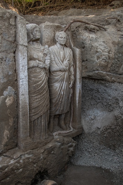 Un rilievo funebre di una coppia, uomo e donna – a dimensioni quasi reali- pertinente a una tomba monumentale presso la necropoli di Porta Sarno, è affiorato nel corso di uno scavo archeologico, nell’ambito del progetto di ricerca “Investigating the Archaeology of Death in Pompeii” condotto dall’Universitat de València in collaborazione con il Parco archeologico (direzione scientifica del prof. Llorenç Alapont).