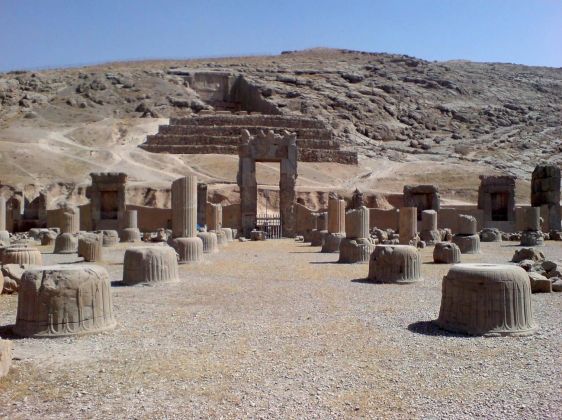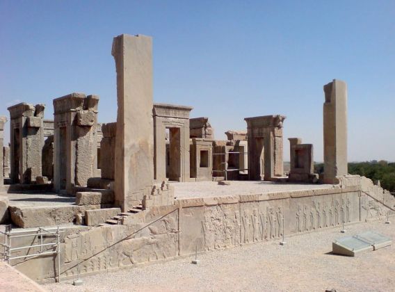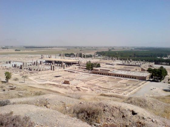 Le figure n. 1, 3 e 5, sono ricostruzioni virtuali dell’antica città di Persepoli, la capitale dell’Impero persiano Achemenide (ca. 550-330 a.C). La città in rovina, che dal 1979 è stata riconosciuta patrimonio mondiale dell’UNESCO, si trova a circa 57 chilometri a nord-est di Shiraz, nel sud-ovest dell’Iran. La figura n. 1 mostra una veduta a volo d’uccello di Persepoli, la figura n. 3, rappresenta una vista di Trachara, il palazzo di Dario il grande (550-486 a.C.), e la figura n. 4 mostra la Sala delle cento colonne, o Sala del Trono.