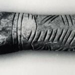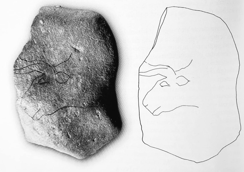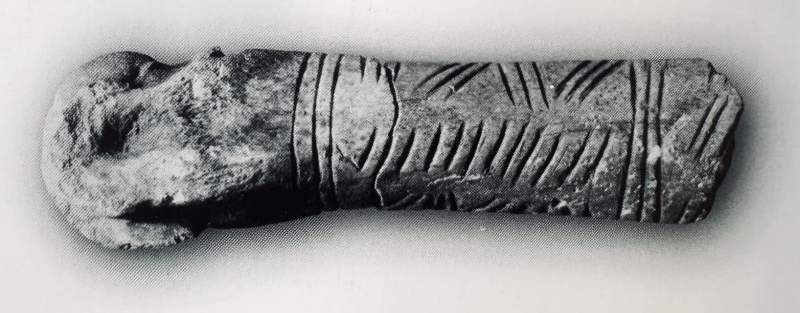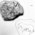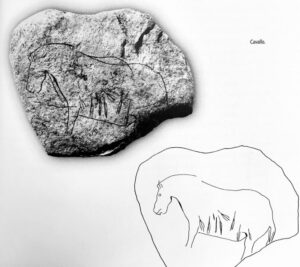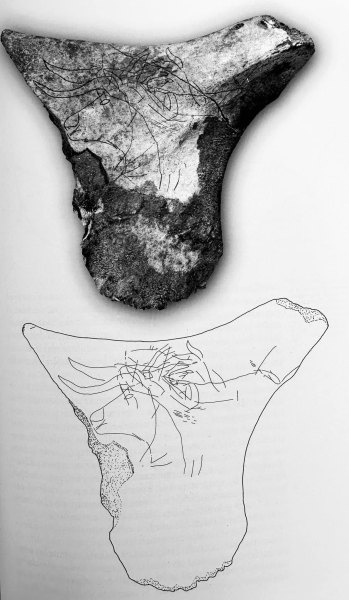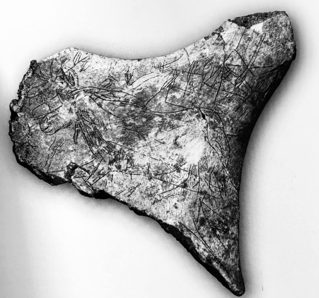 Il più antico oggetto d’autentica arte mobiliare di Paglicci è rappresentato da una porzione di “osso lungo” di grande mammifero, che mostra tutta una complessa serie di graffiti.
