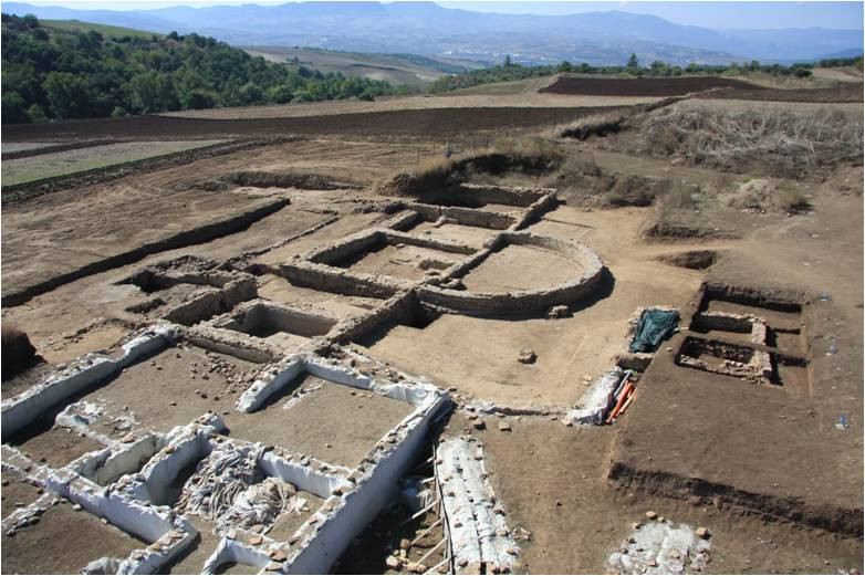 embriciSicuramente connessa al momento di obliterazione degli edifici di III fase e probabilmente in relazione sincronica con le strutture della fase IV, verso il limite orientale dell’area di scavo, è stata rinvenuta una piccola necropoli con 8 sepolture alla cappuccina databili tra V e VII secolo d. C., una delle quali oblitera il mulino della fase precedente. I materiali più recenti suggeriscono un abbandono definitivo del luogo nel VII secolo d. C.