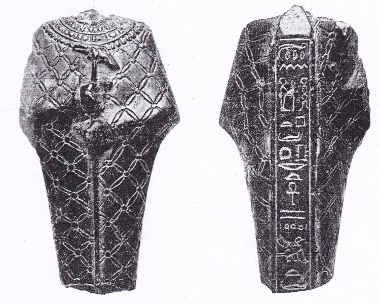 Dopo la parte iniziale, tipica delle formule sacre, si trova il nome del dio Ptah, seguito da titoli che precisano l’ambito geografico, e cioè l’antico tempio dedicato al dio in Menfi. Sembra plausibile ipotizzare che la statuetta sia stata portata a Roma proprio da Menfi, forse come ricordo di una visita all’antichissimo tempio di Ptah.