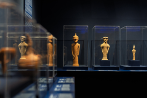 La mostra riunisce circa 120 oggetti, che guidano il visitatore attraverso temi quali la vita quotidiana, le pratiche funerarie, l’arte, la mobilità, il progresso delle tecnologie e i processi di osmosi culturale.