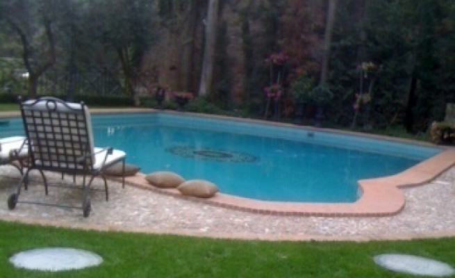 Dentro la villa colonne con imitazioni di capitelli corinzi e cristallo e muratura per chiudere quello che prima era un portico aperto. E poi la piscina, un lungo tunnel sotterraneo, la cascata d’acqua che scende per 25 metri da una parete di basalto di un’antica cava romana.