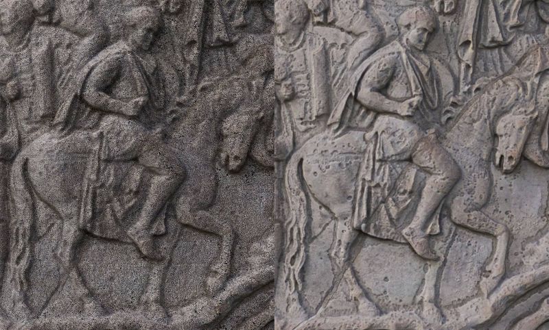 Il rilievo 3D è stato eseguito per documentare lo stato di fatto della Colonna Traiana ed essere utilizzato come base geometrica e conoscitiva in funzione degli interventi di restauro e conservazione già di seguito avviati.
