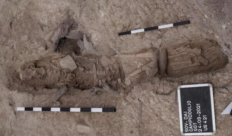 Prosegue il resoconto delle scoperte: “Abbiamo trovato molti materiali. In particolare, per la fase riferibile al Tempio di Giove, sono tornate alla luce alcune terracotte architettoniche dipinte che lo decoravano. Non sono mancate tracce dell’epoca preistorica, prima della fondazione di Roma. Il Palatino e il Campidoglio, per evidenti caratteristiche naturali, erano ideali per l’insediamento delle popolazioni antiche… Abbiamo rinvenuto, tra l’altro, una serie di sepolture medievali di cui non sospettavamo la presenza. Queste inumazioni sono legate, probabilmente, alla presenza di conventi e chiese oggi non più esistenti”.