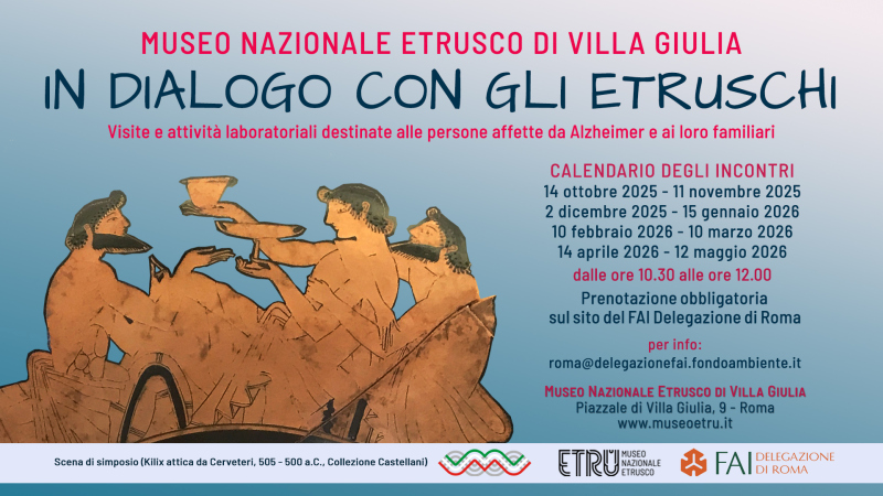 Il progetto attuale, In dialogo con gli Etruschi, nasce dalla collaborazione tra il Museo Nazionale Etrusco e il FAI Delegazione di Roma, con la cooperazione di Alzheimer uniti Roma. L’obiettivo è quello di fornire sollecitazioni che coinvolgano la persona con demenza attraverso stimoli cognitivi, emotivi e relazionali.