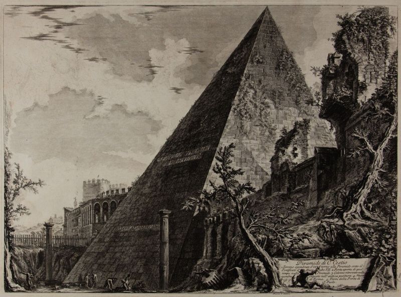 Appassionato d’Egitto o amante della moda, in punto di morte nel 12 a.C. circa, il tribuno della plebe e septemviro Gaio Cestio Epulone dispose che i suoi familiari costruissero per lui, entro 330 giorni, una grande tomba di forma piramidale, pena la perdita della ricca eredità. La sua ultima volontà fu zelantemente eseguita, come ricorda l’iscrizione ancora leggibile sulla superficie orientale dell’edificio in marmo di Carrara: Opus absolutum ex testamento diebus CCCXXX, arbitratu (L.) Ponti P. f. Cla (udia tribu), Melae heredis et Pothi l(iberti).