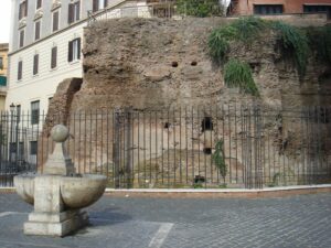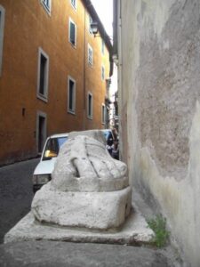 Muovendosi ancora per il centro di Roma, in Via del Piè di Marmo, tra Sant’Ignazio e il Gesù, si trova un grande piede marmoreo, appunto, parte forse di un enorme acrolito. Non è dato sapere a quale divinità appartenesse ma, data la presenza del Tempio di Iside nell’area, non è da escludere si tratti proprio di lei. Dallo stesso tempio proverrebbe una graziosa gatta di marmo, ignorata da tutti i passanti, che oggi sta appollaiata su un cornicione di Palazzo Grazioli prospiciente Via della Gatta: potrebbe trattarsi di Bastet, dea gatta adorata per la sua indole materna e protettiva.
