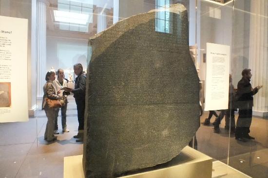 La flotta di Napoleone era partita per la Valle del Nilo portando con sé 167 tra i più insigni e dotti studiosi francesi, selezionati personalmente dal condottiero corso. Arrivati in quella terra mitica, i ricercatori iniziarono a sciamare esplorando tombe millenarie mai profanate, arrampicandosi sulle sfingi, documentando tutto quello che vedevano e inviando rilievi, reperti e disegni al Cairo, dove era stato installato il quartier generale della spedizione accademica. Durante i lavori di ripristino del vecchio forte arabo di Rashid (Rosetta), che i soldati intendevano utilizzare come avamposto contro gli inglesi, tra i detriti fu rinvenuta in modo del tutto casuale una lastra monolitica in granodiorite delle dimensioni di 112,3 x 75,7 x 28,4 cm e dal peso di 760 kg, su cui era incisa un’iscrizione divisa in tre registri corrispondenti a tre differenti lingue e grafie: geroglifico, demotico e greco antico. La notizia dal ritrovamento generò subito una potente ondata di entusiasmo in Europa, alimentando sul piano scientifico una competizione senza esclusione di colpi già in corso tra Francia e Inghilterra sul piano militare e politico. Fu chiaro a tutti, infatti, che i tre registri dovevano recare la traduzione di un medesimo testo, e che la versione in una lingua perfettamente nota come il greco era la chiave che avrebbe consentito, come in uno schema crittografico, di scardinare tutto il resto ridando voce a una lingua illeggibile.