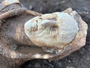 Oggi, dopo settimane di movimentazioni di terra di riporto completamente priva di reperti di interesse archeologico, Parco Scott ci ha regalato una grande sorpresa: una statua marmorea a grandezza naturale che, per la presenza della clava e della leontè – la pelle di leone che ne copre il capo – possiamo senz’altro identificare con un personaggio in veste di Ercole.