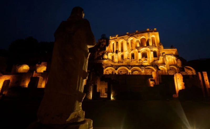 Chiusa al pubblico dagli Anni Settanta, la Domus Tiberiana, avrebbe dovuto riaprire al pubblico nel 2021, restituendo un nuovo, importante tassello al percorso del “museo diffuso” che il Parco Archeologico del Colosseo sta ampliando ormai da diversi anni, incrementando le aree di visita del sito capitolino. La pandemia e la necessità di mettere in sicurezza le preziose scoperte rinvenute durante gli ultimi scavi hanno prolungato l’attesa, ma ora l’imponente residenza legata al nome di Tiberio (sebbene non si debba a lui l’avvio della costruzione), primo palazzo imperiale edificato sul Palatino, con un’estensione che supera i 4 ettari, torna a mostrarsi nel suo aspetto migliore. Valorizzata, peraltro, dall’illuminazione artistica curata da Acea, con un progetto di light architecture realizzato da Areti, in luce dinamica con tecnologia a LED di ultima generazione (imponente il lavoro di impiantistica, con l’installazione di 28 proiettori a incasso al livello della via Nova, 12 proiettori lineari dedicati agli imbotti degli archi e 51 apparecchi a proiezione per l’illuminazione della facciata).