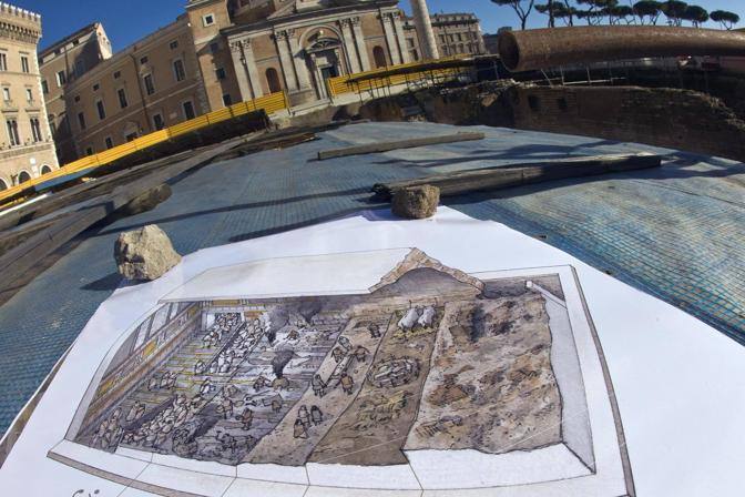 Nascosto dalla costruzione del palazzo delle Assicurazioni Generali a piazza Venezia. E da un’aiuola con tre pini dei primi del ‘900, parte integrante del panorama storico paesaggistico, sacrificati qualche anno fa in suo onore, con grande dolore di ambientalisti e cittadini. L’auditorium di Adriano è riapparso, metro dopo metro, dagli scavi iniziati nel 2007 dalla soprintendenza speciale, «è una delle scoperte archeologiche più importanti degli ultimi 70 anni, dopo i Fori Imperiali», racconta l’archeologa Rossella Rea.