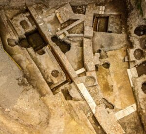 L’indagine archeologica ha quindi restituito reperti eccezionali che vanno dalla tarda età repubblicana al XV secolo. Gli scavi sono ancora in corso ma hanno già dato alla luce oggetti preziosi, studiati, analizzati e pronti a essere ammirati: sono rarissimi esemplari di calici vitrei, brocche e materiale ceramico, insegne dei pellegrini, oggetti in osso per strumenti musicali cerniere per mobili, e grani di rosari.