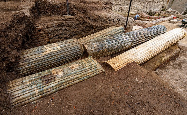 I resti riguardano la parte sinistra della cavea a emiciclo, le sontuose colonne lavorate con marmi pregiati, le raffinate decorazioni a stucco con foglia d’oro e alcuni ambienti utilizzati come depositi di costumi e scenografie. Sono tutti elementi che concorrono a identificare gli edifici ritrovati come il Theatrum Neronis.