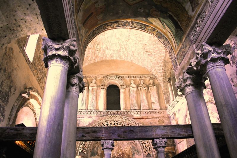 Lo stucco lavorato in minuti, raffinati intarsi nel Tempietto di Cividale del Friuli; l’affascinante, per molti versi inspiegabile, unicum pittorico degli affreschi della chiesa di Santa Maria foris portas a Castelseprio; le testimonianze di un nuovo ordine urbano e monumentale che cambia completamente i connotati della città romana a Brescia; la fascinazione per l’antichità classica nel Tempio di Campello sul Clitunno; la sapiente armonia di stili nell’architettura unica di San Salvatore a Spoleto; gli echi del mondo bizantino di Santa Sofia a Benevento; la valorizzazione dell’antico culto di San Michele a Monte Sant’Angelo: sono tutti segni della profonda trasformazione che avviene in Italia nei due secoli della dominazione longobarda, tra il 568 e il 774 d.C.