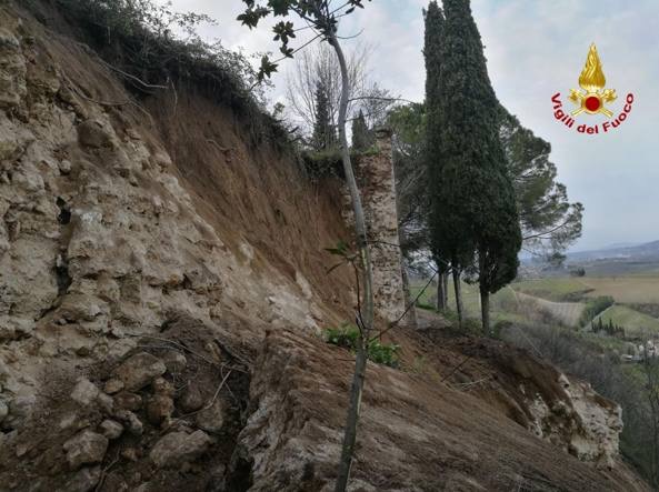 SAN GIMIGNANO (Si). Crolla un tratto delle mura medievali del borgo.