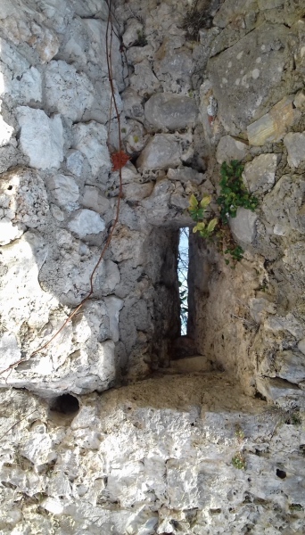 La stessa area palaziale sulla parte bassa della parete che guarda a sud-est, in quelli che dovevano essere cucine e magazzini, ha diverse finestre feritoie ampie e svasate verso l’interno, una delle quali posta in un ambiente a seguire è adattata al tiro laterale.