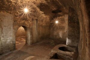 Scendendo le scale all’interno di un palazzo condominiale sito a Santa Maria Capua Vetere (CE), in via Aldo Moro, lungo l’antica via Appia, potremmo avere la sorpresa di imbatterci, in luogo di un comune scantinato, nientemeno che in una domus romana risalente al I secolo a.C.