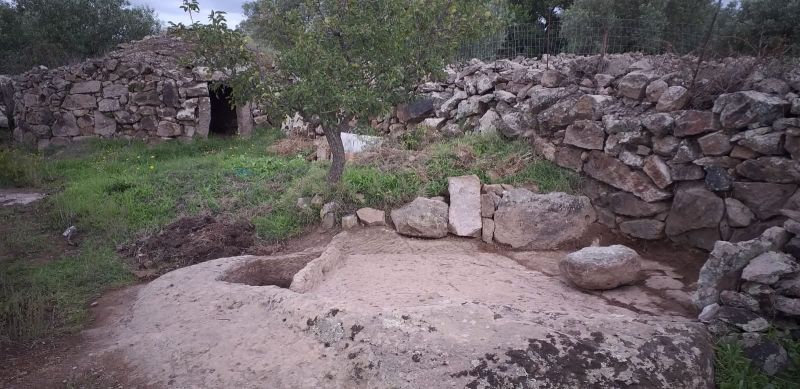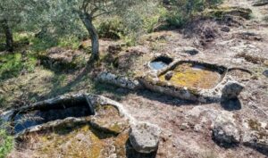 Questo territorio è risultato particolarmente ricco di palmenti rupestri, chiamati qui lacos de catzigare (vasche per la pigiatura), alcuni dei quali utilizzati fino ad epoca recente. La tipologia più comune, scavata nella roccia affiorante, è costituita da un sistema di due vasche comunicanti attraverso un foro o un’apertura a canaletta. Parte di questi manufatti sono stati censiti e catalogati nel corso di recenti indagini archeologiche.