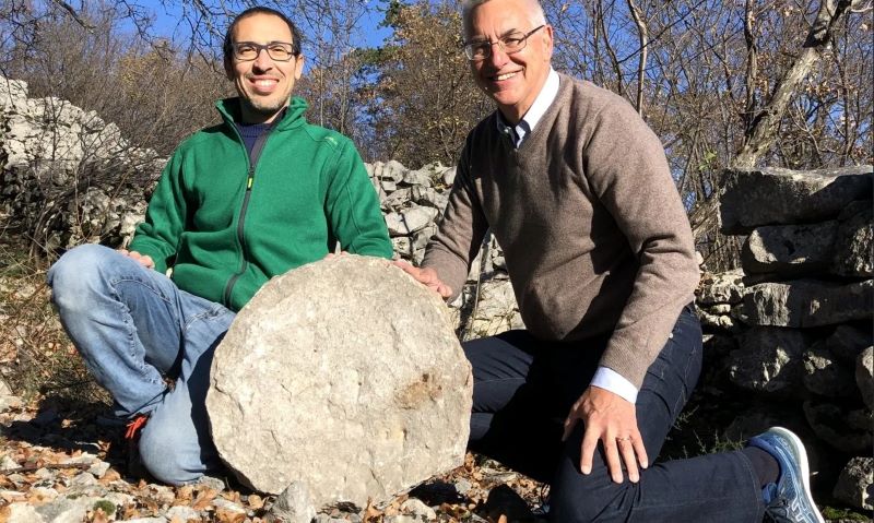 Due pietre circolari, trovate nei pressi dell’ingresso di un castelliere. Una pietra rappresenta il sole, l’altra è ricca di segni precisi, inferti con uno strumento metallico. Le scalfitture si rivelano intenzionali. Siamo nel cuore del Carso triestino, a Rupinpiccolo, a 12 chilometri da Trieste. Minuscola frazione del Comune di Sgonico è a 297 metri sul livello del mare ed ha 117 abitanti. Il castelliere sta un po’ più in alto.