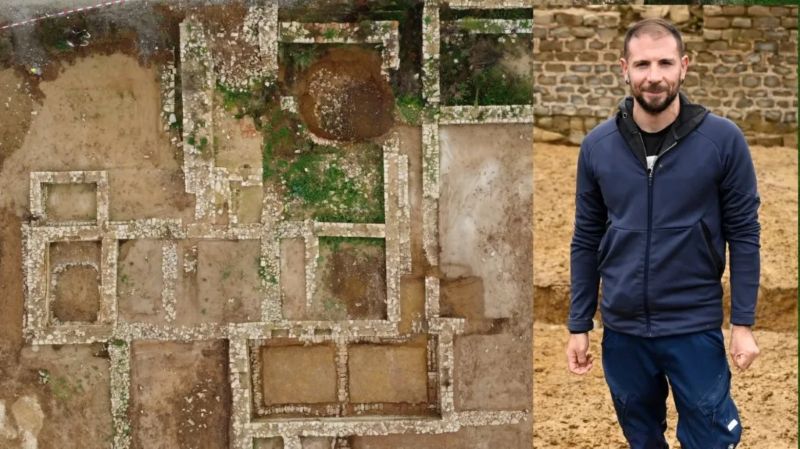 A dirigere i lavori sul campo è stato l’archeologo italiano Fabio Attanasio (nella foto, accanto all’immagine aerea della villa), già attivo in importanti scavi in Italia, affiancato da Nicolas Meunier, dell’Istituto Nazionale per la Ricerca Archeologica (INRA), che ha supervisionato le indagini scientifiche. Gli scavi sono stati realizzati dalla società privata Archeo Diag, specializzata in rilievi topografici e scavi archeologici, su incarico dell’INRA.