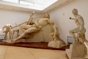 Il Museo è piccolo ma molto luminoso e permette di ritrovarsi faccia a faccia (occhio a occhio, forse) con Polifemo, grazie ad un allestimento che mette insieme resti e riproduzioni, per restituire al visitatore quello che doveva essere l’originale gruppo scultoreo.