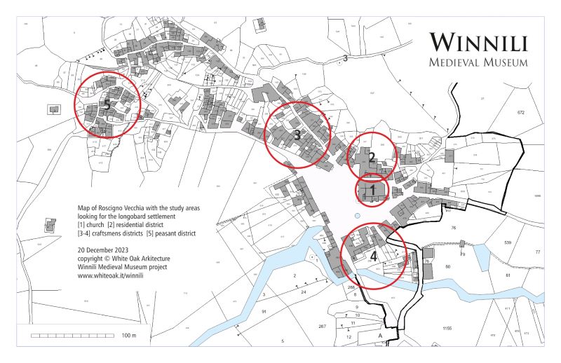 Il Winnili project è iniziato a Luglio 2023 come progetto di ricerca privato di White Oak Arkitecture sull’insediamento medievale del borgo fantasma Roscigno Vecchia, nel cuore del Parco Nazionale del Cilento, in sud Italia, nella provincia di Salerno. Il progetto nasce con l’obiettivo di assistere la Pro Loco nella promozione del borgo fantasma come Città Museo. Dopo quattro settimane di ispezioni sul campo, rilievi strutturali e urbani, ci è chiaro che Roscigno Vecchia era già un villaggio fortificato longobardo non oltre il secolo VIII, diversamente dalla teoria degli storici che lo hanno sempre considerato un anonimo villaggio rurale fino al XV secolo. Il sospetto che la storia altomedievale dei paesi circostanti fosse sottostimata ci ha portato ad estendere la ricerca ad altri paesi.