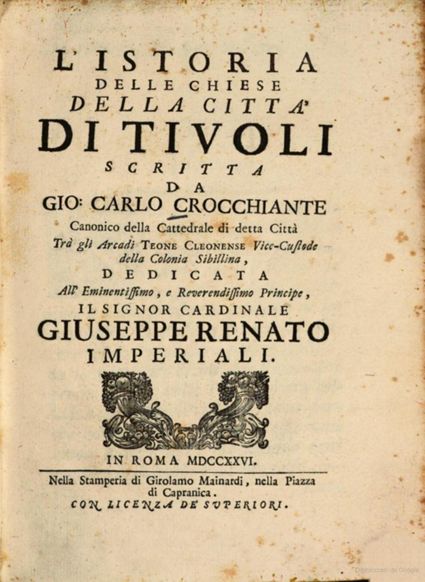– Giovan Carlo Crocchiante, l’Istoria delle chiese della città di Tivoli, Roma 1726