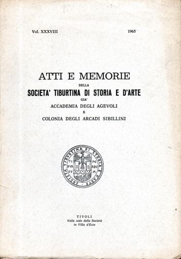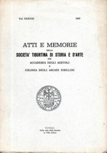 – Atti e Memoria della Società Tiburtina di Storia e D’Arte, Copertina del volume XXXVIII (1965)