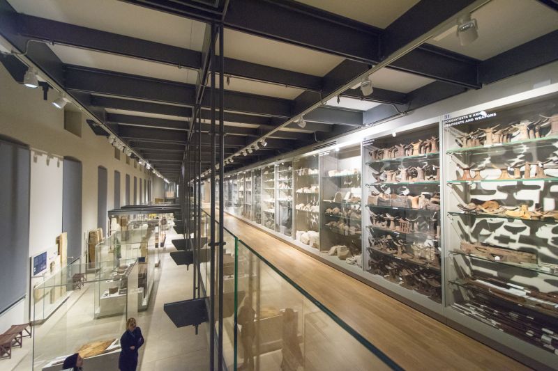 Degli oltre 50.000 pezzi presenti nei depositi, più di 11.000 sono oggi fruibili grazie a un allestimento di grande impatto che ordina i reperti per tipologia, materiali, forma e funzione.