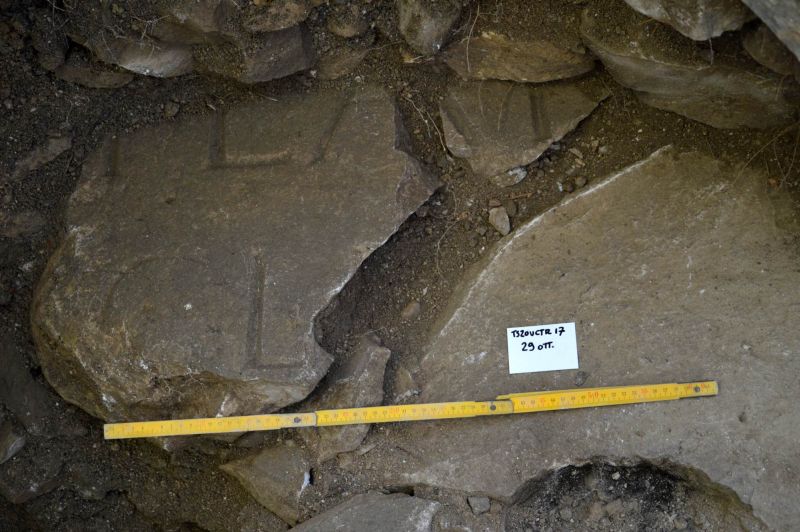 triesteUna volta abbandonato, subito prima della costruzione del grande muro, il silos è stato riempito da frammenti architettonici e da un enorme blocco di pietra squadrato, con cornici scolpite, che riporta tracce di un’iscrizione.