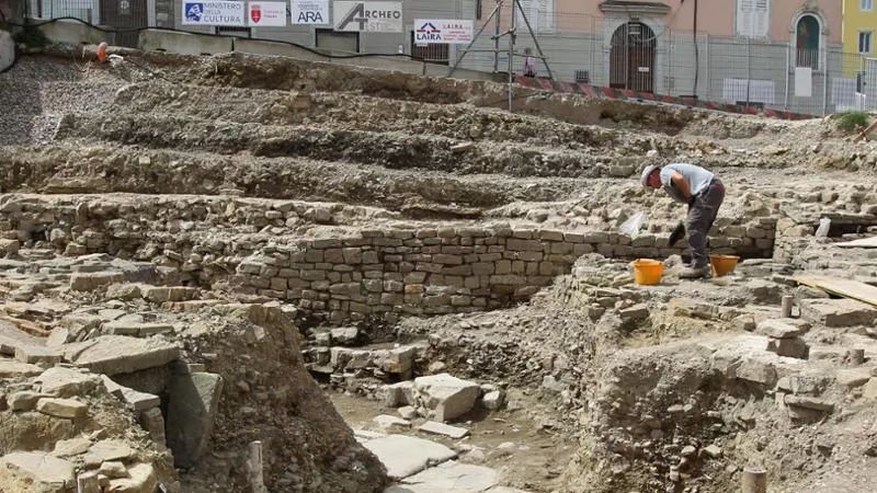Il primo obiettivo del cantiere, infatti, era portare alla luce i resti di età romana, di cui già si conoscevano due frammenti, entrambi del I secolo dopo Cristo: un complesso di quattro colonne in calcare di Aurisina, che costituiva probabilmente un arco e che ora è perfettamente visibile a chi transita nelle vicinanze; ed un lastricato, collocato a tre metri di profondità e poco distante da casa Francol, in corrispondenza del quale è stato trovato il basamento di un probabile monumento.