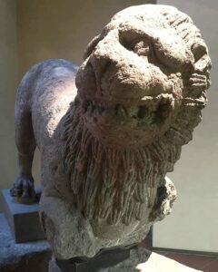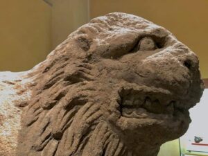 Il leone, che è uno dei soggetti prediletti della scultura funeraria etrusca, aveva la funzione di difendere e proteggere l’ipogeo ed il suo corredo da eventuali predatori.